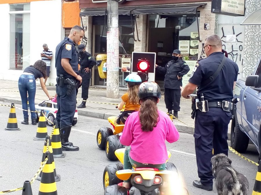 O pelotão de Infantaria marcou presença no 15º Circuito da Saúde promovido pelos Rotarys Clubs da região, na praça central de Jandira, Anielo Gragnano, no dia (02/10). Na fotografia podemos observar um guerreiro da FALB Pré-Militar operando o semáforo da mini pista do Programa de Educação para o Trânsito, da Guarda Civil Municipal, com carrinhos elétricos e orientações para os futuros motoristas.