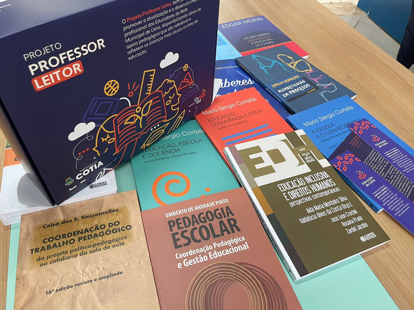 As publicações entregues para os professores são assinadas por grandes nomes da educação como: Paulo Freire, Edgar Morin, Mario Sergio Cortella, Umberto de Andrade Pinto, Cipriano Carlos Luckesi, Tizuko Morchida Kishimoto, entre outros.